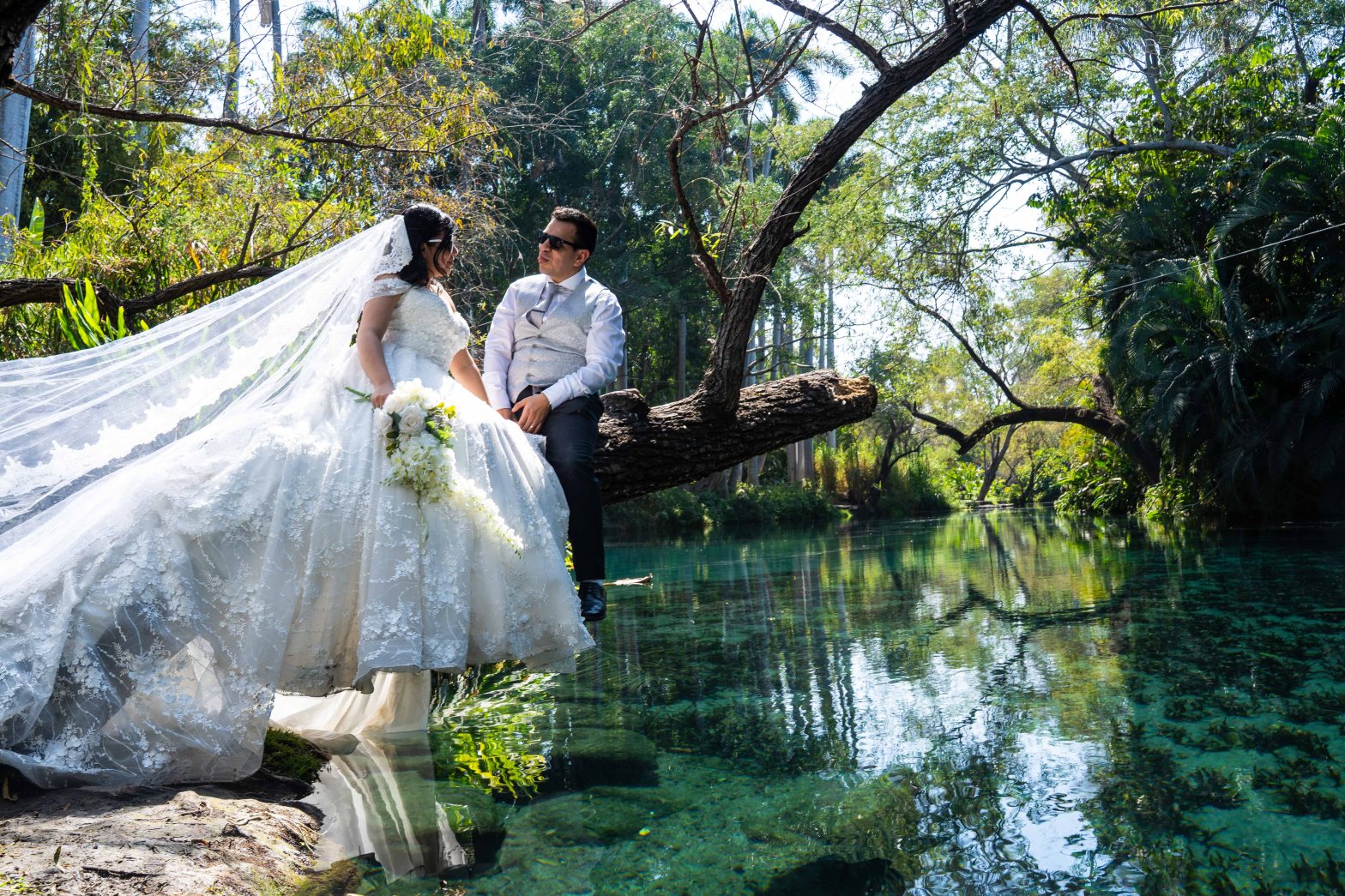 Una sesión trash the dress en Las Estacas que lo tuvo todo: naturaleza, tranquilidad y un cierre espectacular con fotos subacuáticas en aguas cristalinas.